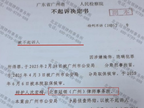 广东深圳男子出借银行卡转账涉嫌“掩隐罪”,冠领律师助其获不起诉决定