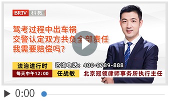 驾考过程中出车祸 交警认定双方共负全部责任 我需要赔偿吗?